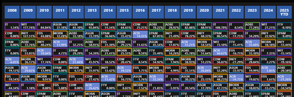 Monitor Performance using this Dynamic, Always Current, Periodic Table of Investments