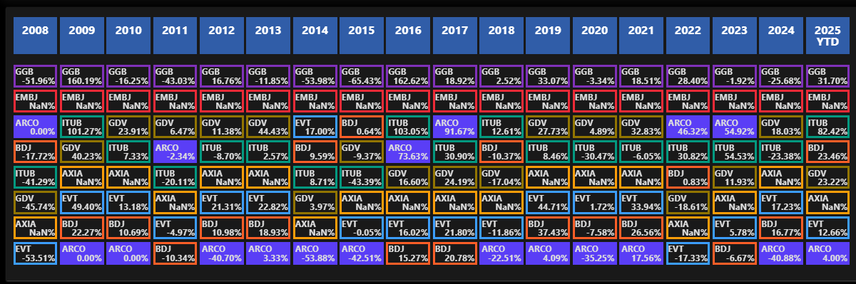 Paid accounts can visualize any portfolio or watchlist in this performance visualization… plus a million other cool things — including daily data, sharing custom tables for the assets you care about, industry-leading portfolio backtesting, and full portfolio strategy analytics. Both individual and professional versions are supported.