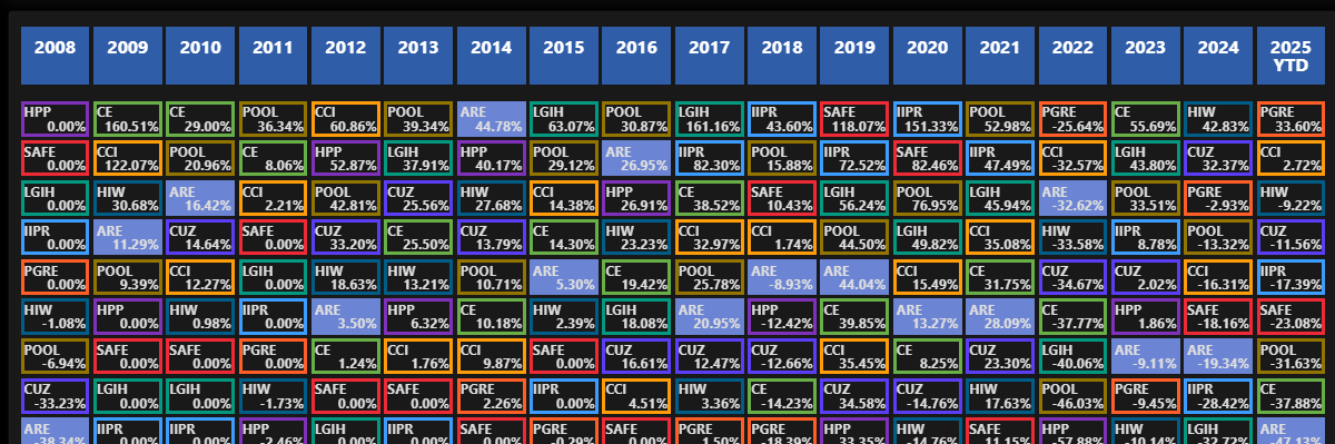 Paid accounts can visualize any portfolio or watchlist in this performance visualization… plus a million other cool things — including daily data, sharing custom tables for the assets you care about, industry-leading portfolio backtesting, and full portfolio strategy analytics. Both individual and professional versions are supported.
