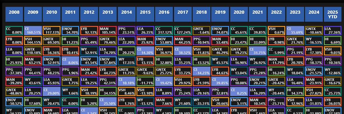 Monitor Performance using this Dynamic, Always Current, Periodic Table of Investments