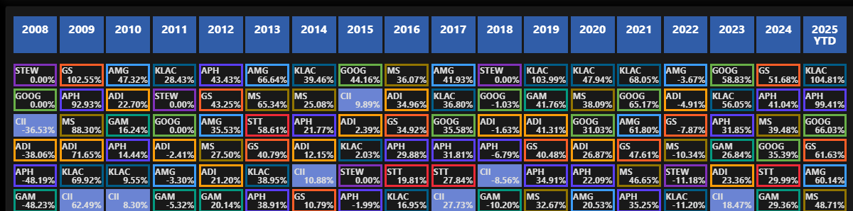 Paid accounts can visualize any portfolio or watchlist in this performance visualization… plus a million other cool things — including daily data, sharing custom tables for the assets you care about, industry-leading portfolio backtesting, and full portfolio strategy analytics. Both individual and professional versions are supported.