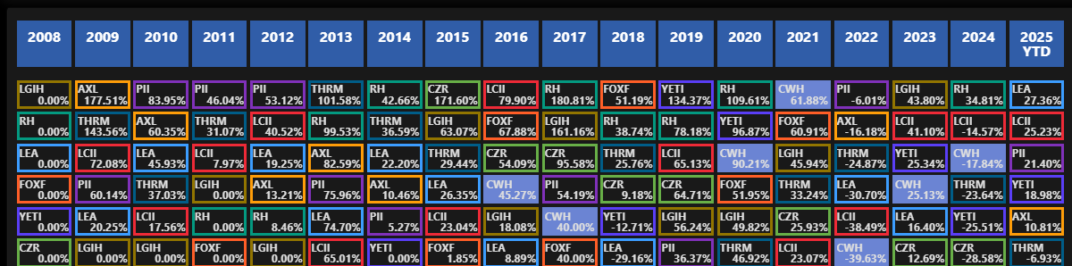 - Significant dependency on the cyclical nature of the RV market poses revenue volatility risks.