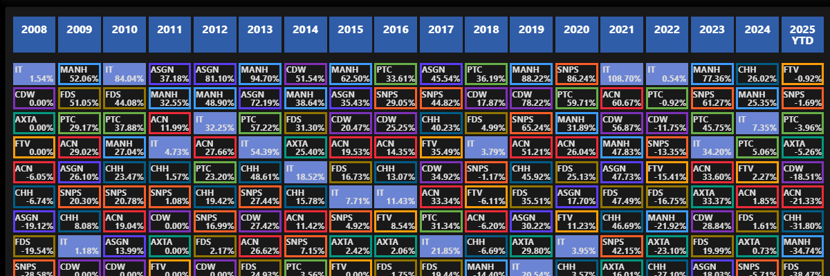 Monitor Performance using this Dynamic, Always Current, Periodic Table of Investments