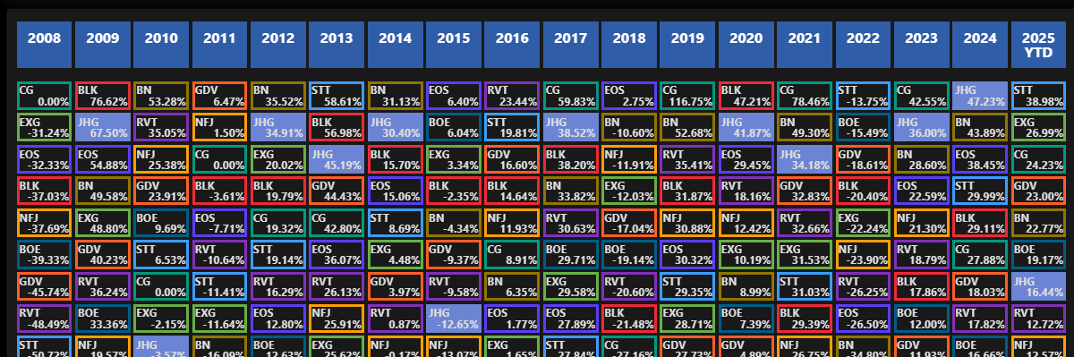 Monitor Performance using this Dynamic, Always Current, Periodic Table of Investments