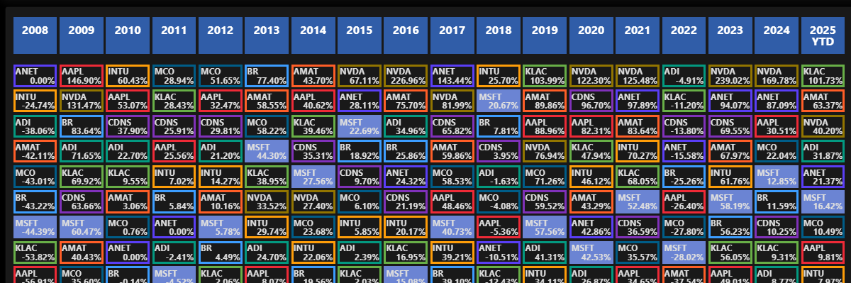 Monitor Performance using this Dynamic, Always Current, Periodic Table of Investments