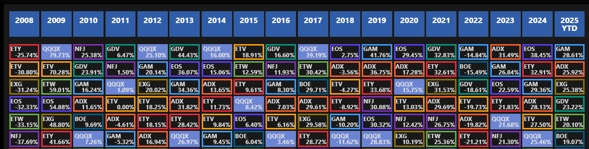 Monitor Performance using this Dynamic, Always Current, Periodic Table of Investments