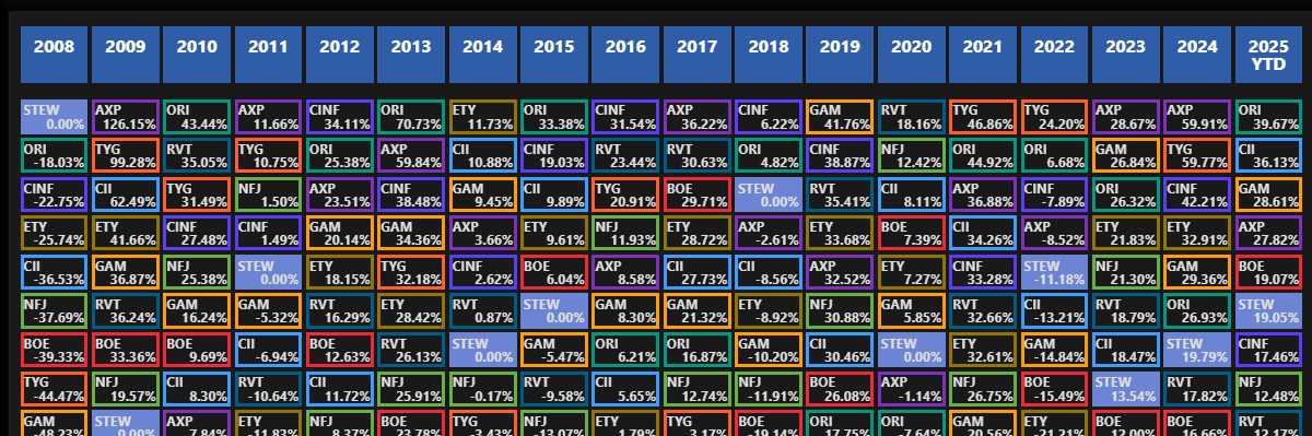 Monitor Performance using this Dynamic, Always Current, Periodic Table of Investments