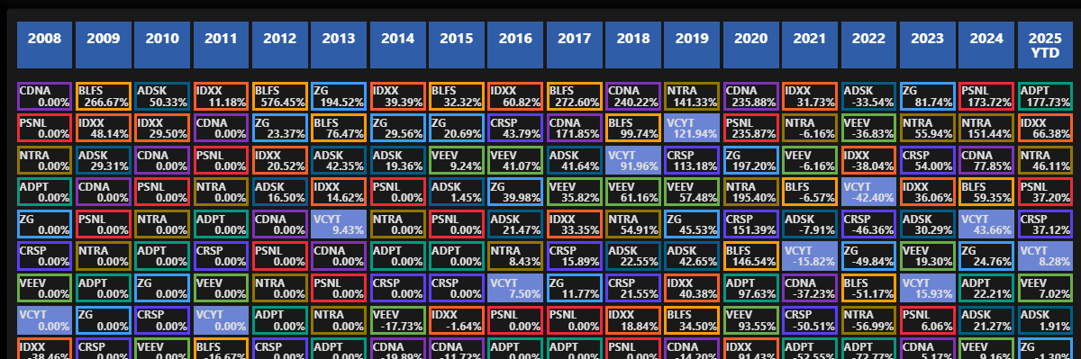 Paid accounts can visualize any portfolio or watchlist in this performance visualization… plus a million other cool things — including daily data, sharing custom tables for the assets you care about, industry-leading portfolio backtesting, and full portfolio strategy analytics. Both individual and professional versions are supported.