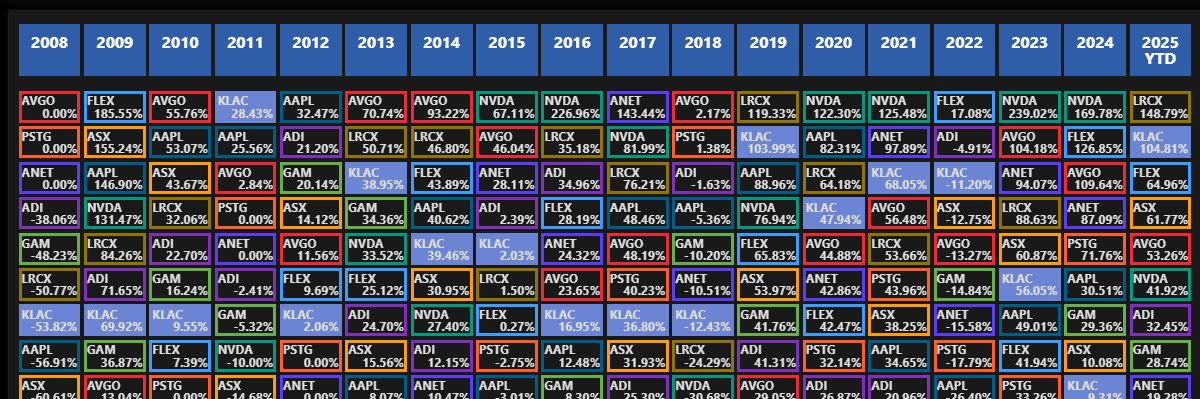 - تمتلك شركة KLAC مركزًا قويًا في صناعة معدات أشباه الموصلات، حيث توفر تقنيات رئيسية لصناعة الرقائق المتطورة.