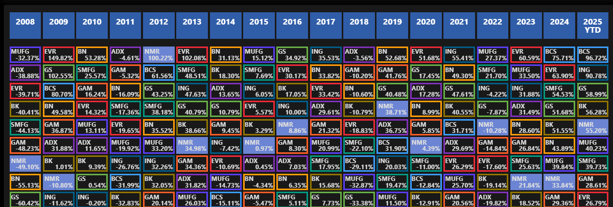 هذه المحاكاة لا تعتمد على حسابات تداول فعلية أو محافظ واقعية قد تكون موجودة أو غير موجودة لهذه الإستراتيجية وقد تختلف ماديًا، بما في ذلك الأداء الأسوأ من الأداء الموضح أعلاه. الأداء السابق لا يشير بالضرورة إلى الأداء المستقبلي. نتائج الأداء بما في ذلك مقاييس المخاطر والتنوع غير مضمونة للاستمرار في المستقبل.