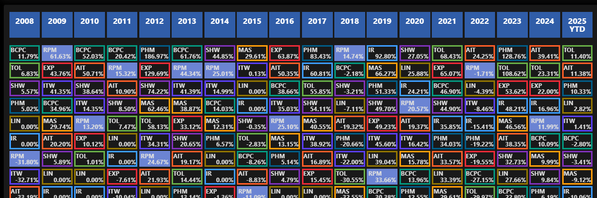 - تمتلك RPM محفظة متنوعة من العلامات التجارية الراسخة عبر عدة قطاعات بما في ذلك الطلاءات الصناعية والمنتجات المتخصصة.