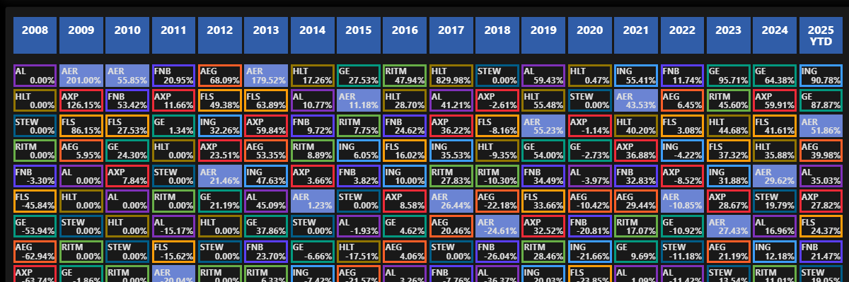 Отслеживайте результаты с помощью этой динамической, всегда актуальной периодической таблицы инвестиций
