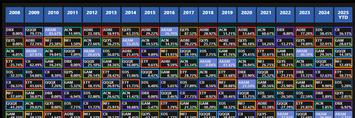 Отслеживайте результаты с помощью этой динамической, всегда актуальной периодической таблицы инвестиций
