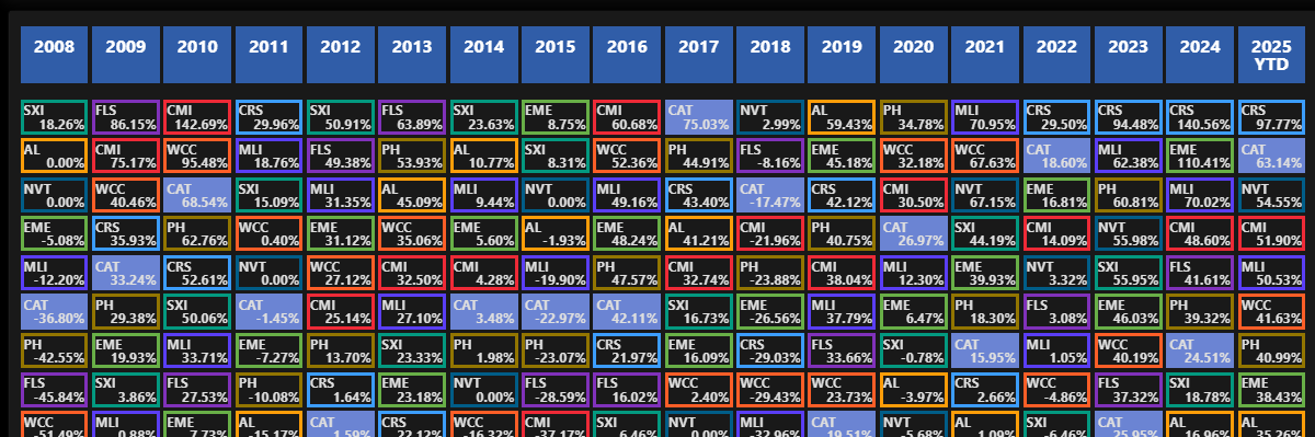 Отслеживайте результаты с помощью этой динамической, всегда актуальной периодической таблицы инвестиций