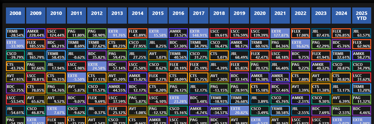 Отслеживайте результаты с помощью этой динамической, всегда актуальной периодической таблицы инвестиций