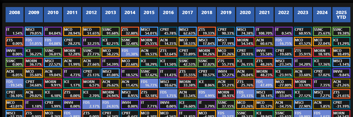 Отслеживайте результаты с помощью этой динамической, всегда актуальной периодической таблицы инвестиций