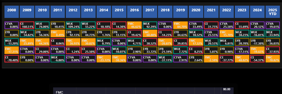 - Зависимость FMC от условий сельскохозяйственного рынка делает её доходы уязвимыми к колебаниям цен на сырьевые товары.