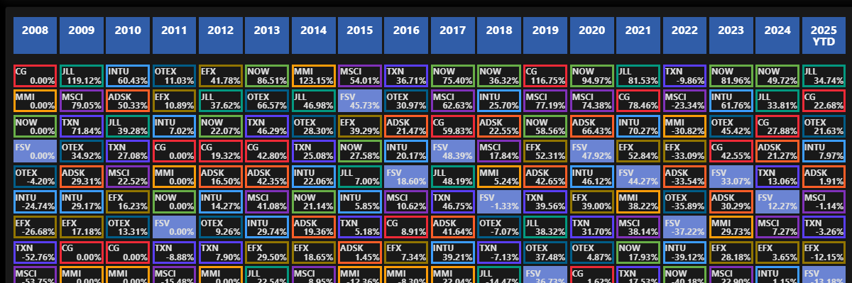 Отслеживайте результаты с помощью этой динамической, всегда актуальной периодической таблицы инвестиций
