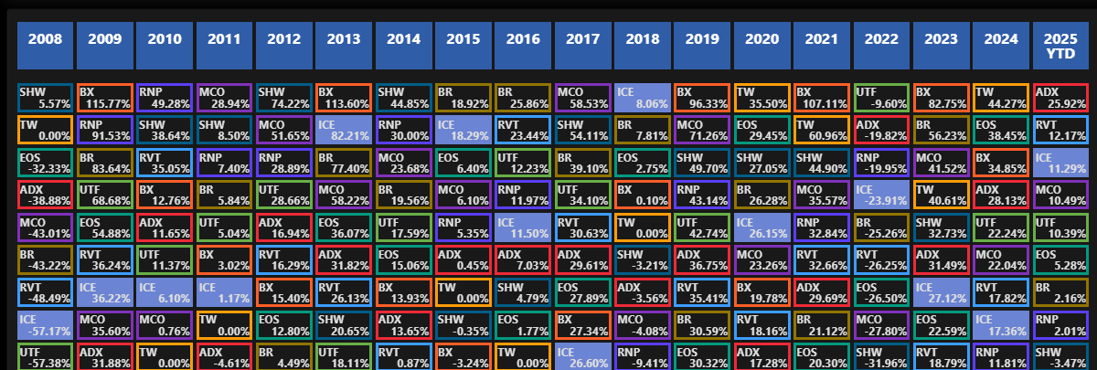 Отслеживайте результаты с помощью этой динамической, всегда актуальной периодической таблицы инвестиций