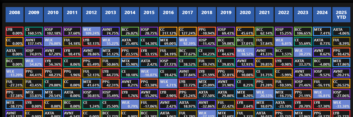Отслеживайте результаты с помощью этой динамической, всегда актуальной периодической таблицы инвестиций